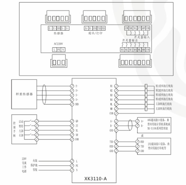 XK3110- A型电子称重仪表是由单片微机控制,集配料、称重、控制于一体的智能化仪表。内敛式设计,操作简单,独特的抗干扰、抗雷击措施,使该控制器能在恶劣的环境中可靠使用。