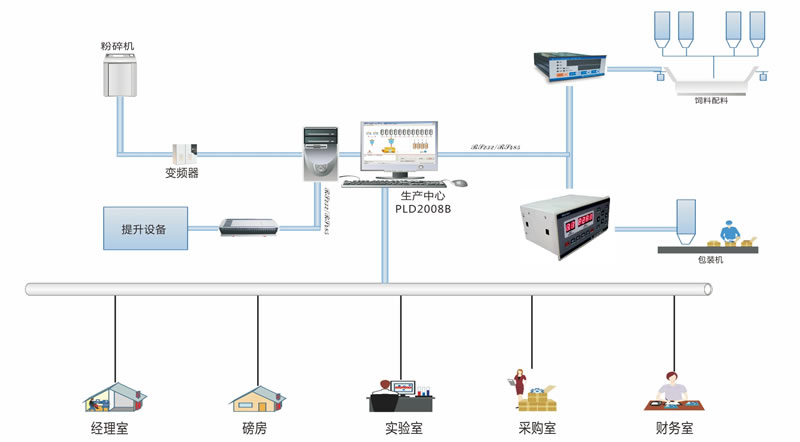 PLD2008B型配料自动控制系统具备饲料生产过程的全自动控制、生产数据自动记录及数据分析统计等多项功能。控制系统采用分布式设计,实时配料系统、智能PID调节,协调控制粉碎、配料、混合、包装各个环节。控制系统实时存储生产数据用户可对生产数据进行多角度的查询、分析、统计。